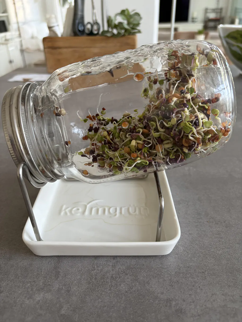 Das hochwertige und stylische Sprossenglas für Einsteiger: Mit einem Fassungsvermögen von 700-1500ml enthält das Glas eine Keramik-Abtropfschale sowie einen Deckel samt Sieb und ein Abtropfgestell, alles aus Edelstahl. 0% Plastik, 0% Aluminium!